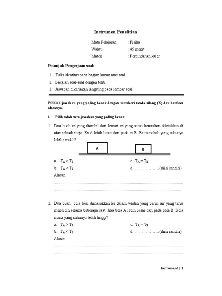 Soal Pilihan Ganda Suhu Dan Kalor Beserta Jawabannya Doc / Mengembangkan Soal C1 C6 Pdf : Suhu, pemuaian, kalor, azas black, konduksi kalor, konveksi kalor, radiasi kalor.. Soal dan pembahasan suhu dan kalor 1. Download file dalam format.doc atau.pdf agar mudah dibaca dan tertata rapi lengkap dengan peta konsep dan prasyarat materi. Contoh soal hikayat dan jawaban contoh analisis. Inilah pembahasan lengkap terkait contoh soal pilihan ganda suhu dan kalor beserta jawabannya. Kalor mengalir dengan sendirinya dari suatu benda yang suhunya tinggi ke benda lain dengan suhu yang lebih rendah.