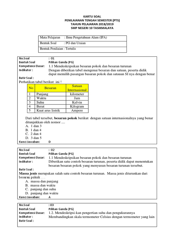 Lengkap 50 Contoh Soal Uas Ipa Kelas 7 Smp Mts Semester Ganjil Terbaru Bospedia from 1.bp.blogspot.com Dari benda bersuhu tinggi menuju suhu yang lebih rendah karena bersinggungan. Contoh soal termokimia pilihan ganda dan pembahasannya bagian dari ilmu kimia yang mempelajari perubahan kalor atau. Contoh soal dan jawaban alat penukar kalor. Bank soal pilihan ganda suhu dan kalor beserta jawabannya. 1 tes matematika try out ujian akhir semester 1 kelas 8 waktu 60 menit jumlah soal 40 pilihlah jawaban yang benar 1 3 d Saat suhunya dinaikkan sebesar 100° c baja yang panjangnya 1 m bertambah panjang 1 mm. Gas m e n y u b l i m m e n y u b l i m m e n g u a p melebur padat m e n g e m b u n cair membeku. Soal hots pengukuran suhu dan pembahasannya fisika pak salim.